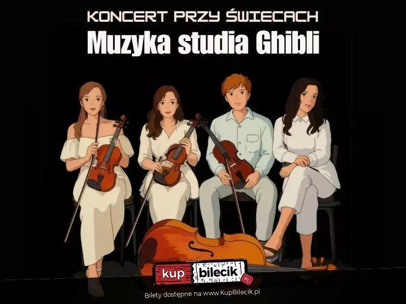 Zapraszamy na niezapomniany wieczór przepełniony magią dźwięków z bajek Studia Ghibli - jednego z najbardziej niezwykłych fenomenów w historii kina animowanego. Podczas tego wyjątkowego wieczoru kwartet smyczkowy z towarzyszeniem fortepianu wykona niezwykłe aranżacje najbardziej znanych tematów muzycznych ze studia Ghibli. W programie znajdą się m.in. poruszające melodie z bajek.