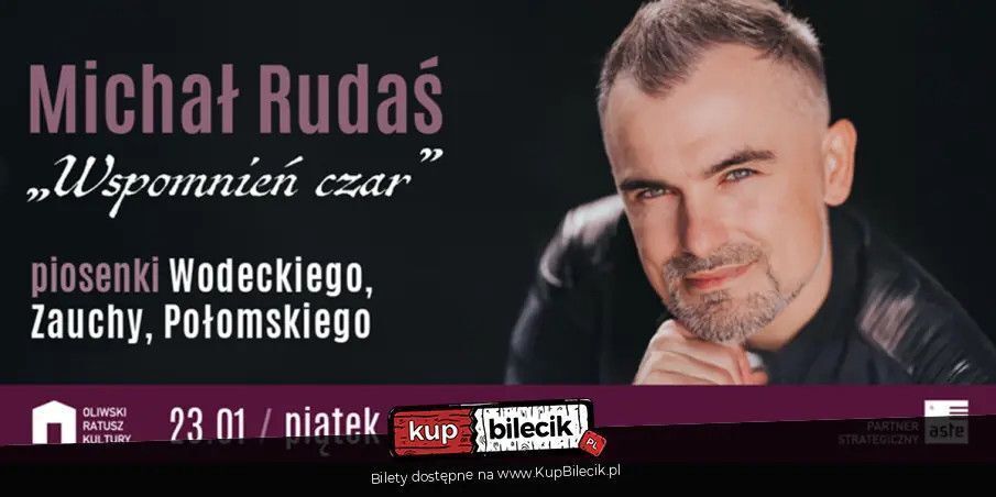 Oliwski Ratusz Kultury zaprasza na koncert Michała Rudasia "Wspomnień czar" piosenki z repertuaru Zbigniewa Wodeckiego, Andrzeja Zauchy oraz Jerzego Połomskiego.