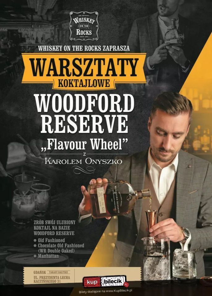 Warsztaty organizowane w Whiskey On The Rocks, podczas których będziecie mieli okazję przygotować klasyczne koktajle na bazie Woodford Reserve. Zabierzemy Was w podróż, w której trakcie Karol opowie o historii marki, składnikach oraz nauczy Was obsługi sprzętu barmańskiego. Chwilę później pojawi się najbardziej wyczekiwany etap, czyli zajęcia praktyczne, które skończą się wspólną degustacją Bilety do nabycia na: KupBilecik.pl