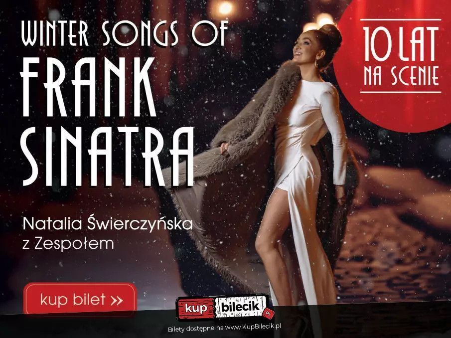 Wyobraź sobie Nowy Jork przykryty śniegiem, dźwięki dzwoneczków na Piątej Alei, zapach kawy w klasycznej kawiarni i swing płynący z gramofonu. Niezwykły koncert Natalii Świerczyńskiej przeniesie Cię wprost w serce lat 40., 50. i 60., do dźwięków ponadczasowych standardów i największych hitów Franka Sinatry. Już od 10 lat koncert Winter Songs of Frank Sinatra rozgrzewa serca publiczności w całej Polsce - i w tym roku wracamy z jeszcze większą dawką swingującej świątecznej energii! W programie usłyszysz największe zimowe przeboje, takie jak Let It Snow, Jingle Bells czy Winter Wonderland, oraz ponadczasowe hity Franka Sinatry, m.in. New York, New York czy My Way. Tym razem - w nowych, specjalnie przygotowanych aranżacjach. Piosenki największego dżentelmena wszech czasów, opowiedziane z perspektywy kobiety - a dokładniej: zaśpiewane przez Natalię Świerczyńską - to gwarancja niezapomnianego wieczoru.
