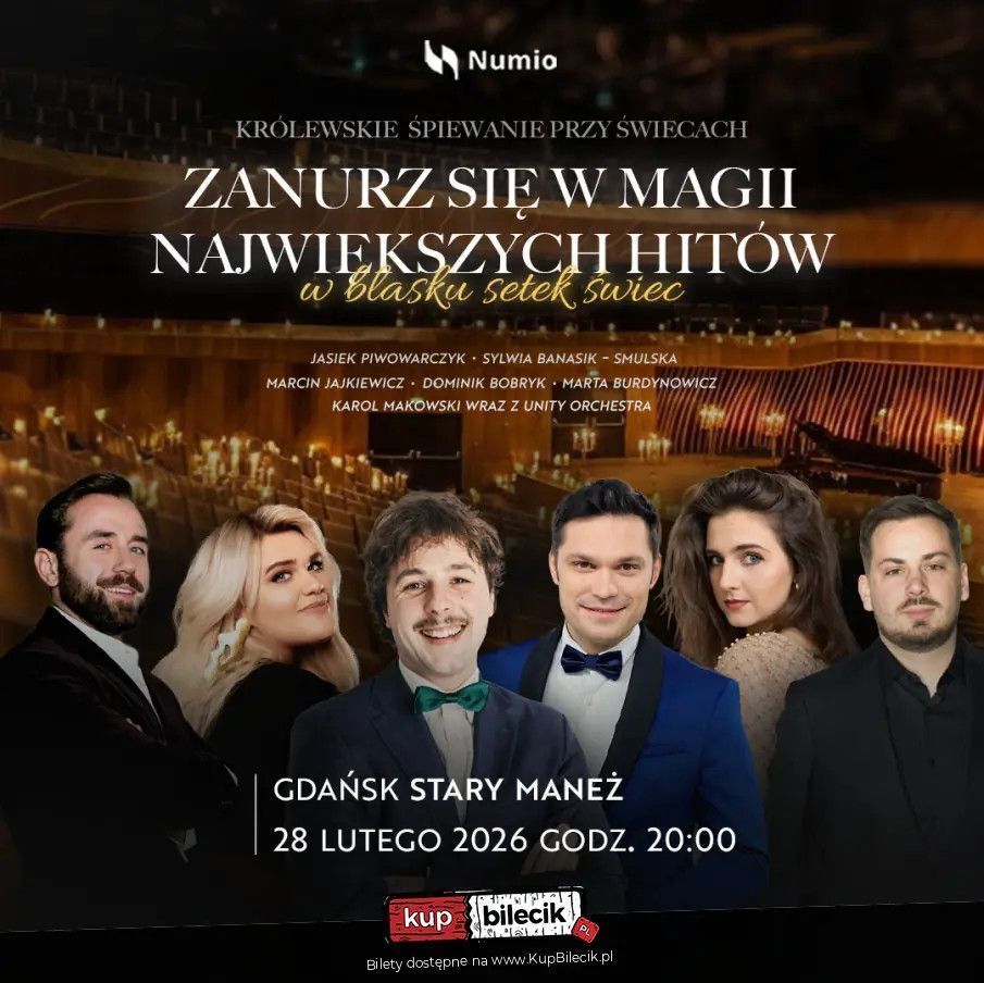 Niezapomniana noc muzyki, blasku świec i światowych hitów! Sylwia Banasik-Smulska, Marta Burdynowicz, Marcin Jajkiewicz, Dominik Bobryk i Jasiek Piwowarczyk - zwycięzca tegorocznej edycji The Voice of Poland, zapraszają Cię na wyjątkowy koncert, który zmieni Twój wieczór w magiczną przygodę.
