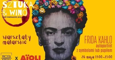 • Malowanie przy winie w Aioli - Frida Kahlo - autoportret z symbolami lub pupilem