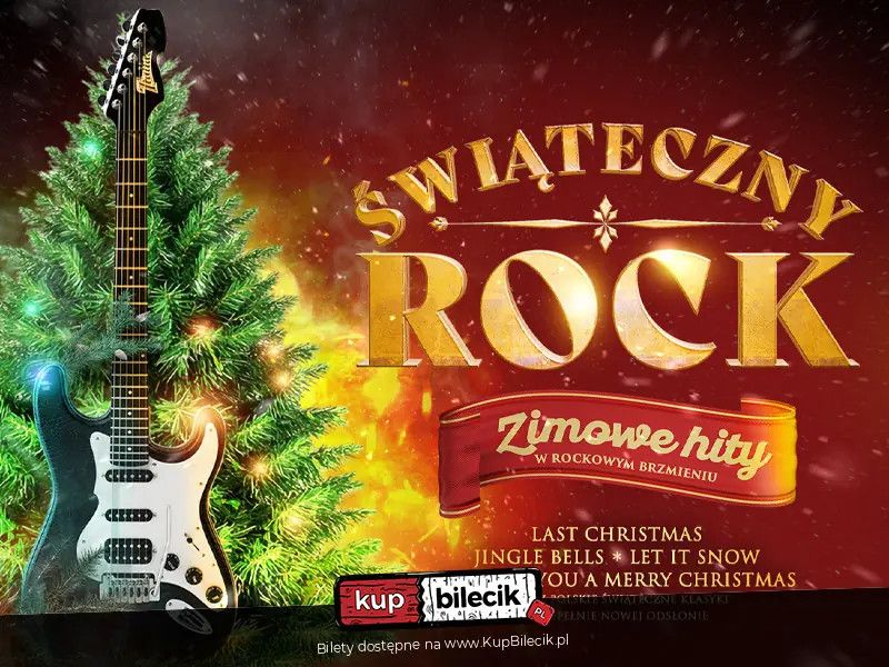 bilety: Twoje ulubione świąteczne piosenki w zupełnie nowym brzmieniu - zaskakująco rockowym. Świąteczny Rock to nie tylko koncert - to pełne emocji, świąteczne przeżycie dla całej rodziny. Blask świec, zapach choinek, dźwięki gitar i melodie, które wszyscy znamy... ale jeszcze nigdy tak ich nie słyszeliśmy. To wieczór, który połączy pokolenia - dzieci, rodziców i dziadków. To święto muzyki, wspomnień i nowej energii, z którą zamkniesz rok tak, jak na to zasługujesz - z radością, mocą i wdzięcznością. W wyjątkowej, świątecznej atmosferze, usłyszysz największe zimowe hity w rockowych aranżacjach. Zabrzmią m.in.: Świąteczny Rock artyści: Różni artyściTwoje ulubione świąteczne piosenki w zupełnie nowym brzmieniu – zaskakująco rockowym. Świąteczny Rock to nie tylko koncert – to pełne emocji, świąteczne przeżycie dla całej rodziny. Blask świec, zapach choinek, dźwięki gitar i melodie, które wszyscy znamy… ale jeszcze nigdy tak ich nie słyszeliśmy. Bilety do nabycia na: KupBilecik.pl |