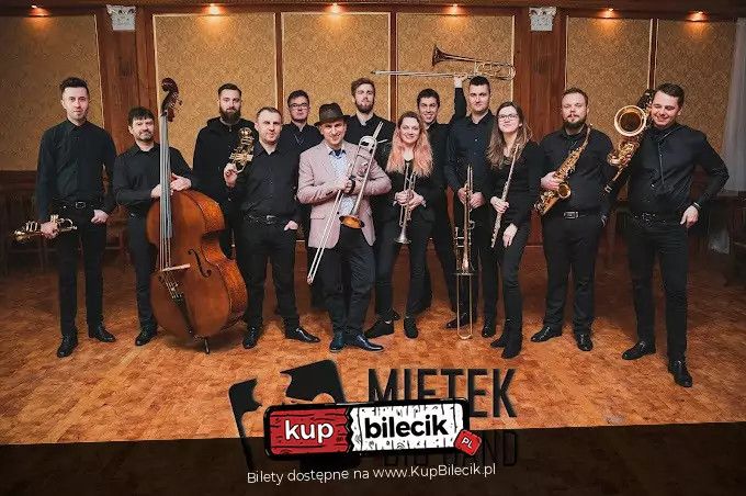 bilety: Mietek Big Band to zespół młodych ambitnych muzyków, grających na codzień w różnych składach, różne style i gatunki muzyczne. W tym projekcie spotkali się z powodu wspólnej pasji, którą jest Big Band! Duża orkiestra jazzowa to muzyczna forma sztuki, rozrywki związanej nieodłącznie z erą swingu lat 30 i 40 XX w. Piosenki z American Song Book i utwory instrumentalne znane są z wykonań wielu artystów światowej sławy. Nasz zespół powstał w 2019 roku, aby rozpowszechniać wspaniałą muzyczną fascynacje i w przystępny sposób słuchaczy zarażać tym stylem. Mietek Big Band artyści: Różni wykonawcyBig-band to muzyczna forma sztuki i rozrywki związanej nieodłącznie z erą swingu lat dwudziestych i trzydziestych XXw. Piosenki z American Song Book i utwory instrumentalne znane są z wykonań wielu artystów światowej sławy. Nasz zespół powstał w 2019 roku aby rozpowszechniać wspaniałą muzyczną fascynacje i w przystępny sposób zarażać tym stylem wszystkich, których spotkamy na swojej drodze. Zagramy prywatny koncert w ogrodzie i event na sali balowej gdzie zatańczysz przy dźwiękach big-bandu w rytm takich przebojów jak „New York, New York…” czy „Fly Me To The Moon”. Posłuchasz jazzowych solówek i przeniesiesz się w czasie do świata kiedy muzyka tworzyła się na żywo w wyjątkowy i niepowtarzalny sposób. Bilety do nabycia na: KupBilecik.pl |