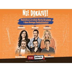 Zapraszamy na wydarzenie, w którym ponadczasowa twórczość Marka Grechuty i Jana Kantego Pawluśkiewicza spotyka się z humorem, lekkością i spontanicznością! "Nie Dokazuj! Największe przeboje Marka Grechuty i Jana Kantego Pawluśkiewicza" to nie tylko koncert - to pełna emocji podróż przez największe przeboje tych wyjątkowych artystów, opowiedziana z dystansem i uśmiechem. W projekcie biorą udział wspaniali artyści: Kasia Pakosińska, Staszek Karpiel - Bułecka i Rafał Cieszyński, którzy nie tylko zaśpiewają legendarne utwory, ale również zaskoczą publiczność błyskotliwymi anegdotami i ciekawymi historiami. Każda piosenka stanie się pretekstem do opowieści, które przeniosą widzów w świat pełen wspomnień, zabawnych sytuacji z życia zawodowego i osobistego artystów.