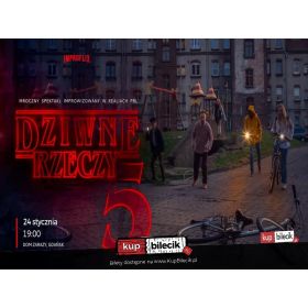bilety: Dziwne Rzeczy - mroczny spektakl improwizowany w realiach PRL. Spektakl improwizowany Dziwne Rzeczy jest inspirowany serialem "Stranger Things" i latami 80" Polski PRL. Zabierzemy Cię w tajemniczą podróż do Polski lat 80", w której 13-latkowie stawią czoła niewyjaśnionym zjawiskom, złu, które objawia się w najróżniejszych postaciach, materialnych i metafizycznych. Będzie trochę strasznie, trochę dziwnie i trochę śmiesznie. Bilety do nabycia na: KupBilecik.plDziwne Rzeczy artyści: Różni artyściDziwne Rzeczy są inspirowane serialem "Stranger Things" i latami 80" PRL z muzyką na żywo. Wybierz się w tajemniczą podróż do Polski lat 80", w której 13 latkowie stawią czoła niewyjaśnionym zjawiskom, złu, które objawia się w najróżniejszych postaciach, materialnych i metafizycznych. Będzie trochę strasznie, trochę dziwnie i trochę śmiesznie. Bilety do nabycia na: KupBilecik.pl |