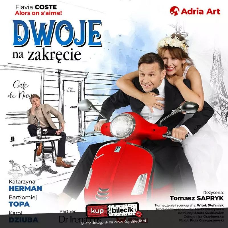 bilety: "Dwoje na zakręcie" to komedia pełna błyskotliwych dialogów, dynamicznych zwrotów akcji i humoru, który wciąga od pierwszej do ostatniej sceny. Zastanawiasz się, kto kogo zaskoczy bardziej? Czy finał rzeczywiście będzie taki, jakiego się spodziewasz? Przeżyj emocjonalną jazdę bez trzymanki! Reżyseria: Tomasz Sapryk Czas trwania: 90 min bez przerwy Uwaga! W spektaklu wykorzystywane jest światło migające. Osoby wrażliwe na ten rodzaj oświetlenia prosimy o zachowanie szczególnej ostrożności. Bilety do nabycia na: KupBilecik.plDwoje na zakręcie artyści: Katarzyna Herman, Bartłomiej Topa, Karol DziubaCo może się wydarzyć, gdy po 27 latach małżeństwa kryzys zacznie pukać do drzwi, a przystojny sąsiad z dołu wkracza do akcji jako... terapeuta Czy ta nietypowa trójka odnajdzie receptę na szczęście, czy raczej wywróci wszystko do góry nogami "Dwoje na zakręcie" to komedia pełna zaskoczeń, ostrych dialogów i zwrotów akcji, które sprawią, że nie oderwiesz oczu od sceny. Kto kogo zaskoczy bardziej I czy finał rzeczywiście będzie taki, jak się spodziewasz Przyjdź i sprawdź, bo ten spektakl to prawdziwa emocjonalna jazda bez trzymanki! Bilety do nabycia na: KupBilecik.pl |