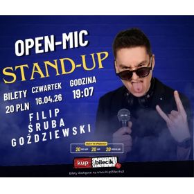| Filip Śruba Goździewski jako prowadzący!dodano 2026-03-26 11:13:41 Klasyczny Open-Mic w piwnicznej atmosferze? TAK! Ale.. Na prowadzeniu Bestia sceniczna Filip Śruba Goździewski! Typ odpala się jak pochodnia i świeci bez końca! Śruba wygrał program "Masz Minutę" (S3E7). Wystąpił w "Magia Nagości" (S4E4). Uczestniczył w "Randkowanie na Tapczacie" show komediowym Adama Van Bendlera (premiera wkrótce). Szukał miłości w "Kolacja w Ciemno". Czy zagrał epizod nago w serialu (premiera wkrótce). Komik, aktor, konferansjer, animator, barman, kelner. Prawdziwy człowiek renesansu. Oprócz Śruby na scenie pojawi się 8 komików. Którzy będą was bawić testowanymi żartami. Podczas wydarzenia jest zakaz nagrywania. Stand-Up: Filip Śruba Goździewski artyści: Filip Śruba GoździewskiKilkoro z was może kojarzyć jegomościa Śrubę z open-miców w 107 czy innych lokalach. Minęło już 3 lata od pierwszego wyjścia na testy i padła decyzja by zebrać to wszystko do kupy, złączyć w całość i zaprezentować przed wami. Więc zapraszam do wspólnego śmiechu. Będzie też open-mic w pierwszej połowie. Bilety do nabycia na: KupBilecik.pl |