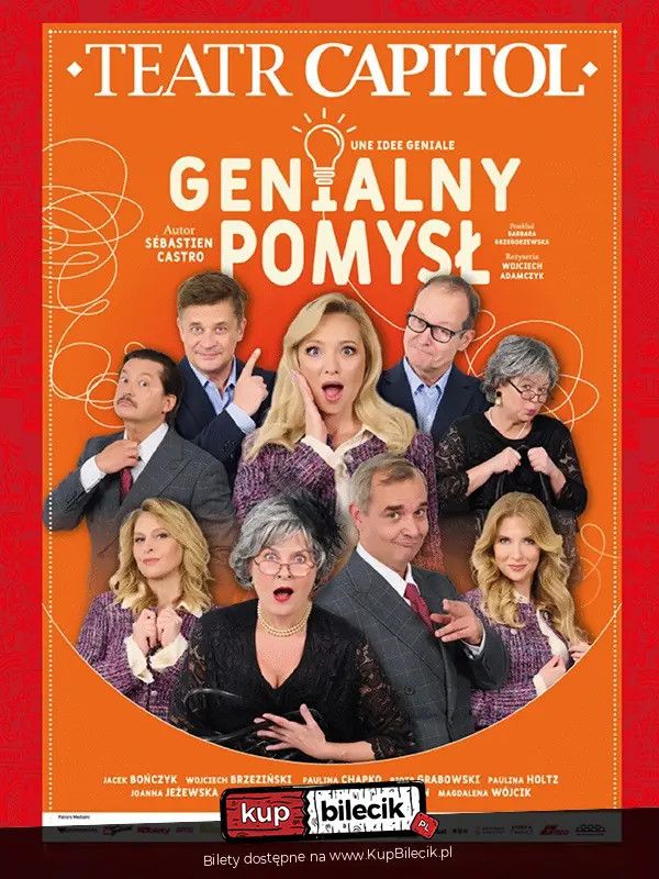 Wyobraź sobie, że twoja partnerka zakochuje się w agencie nieruchomości. Co robisz Oczywiście – znajdujesz jego sobowtóra, zatrudniasz go i… próbujesz zniechęcić ukochaną do potencjalnego kochanka. Proste Wcale nie! „Genialny pomysł” to błyskotliwa komedia pomyłek, w której nikt nie jest tym, za kogo się podaje, nawet sąsiadka, która sama liczy na romans. Nieustające wejścia, wyjścia, zamiany ról, przebrań i osobowości, a wszystko w paryskim domu pełnym tajemnic, przecieków i… niepokojąco znajomych twarzy. Bilety do nabycia na: